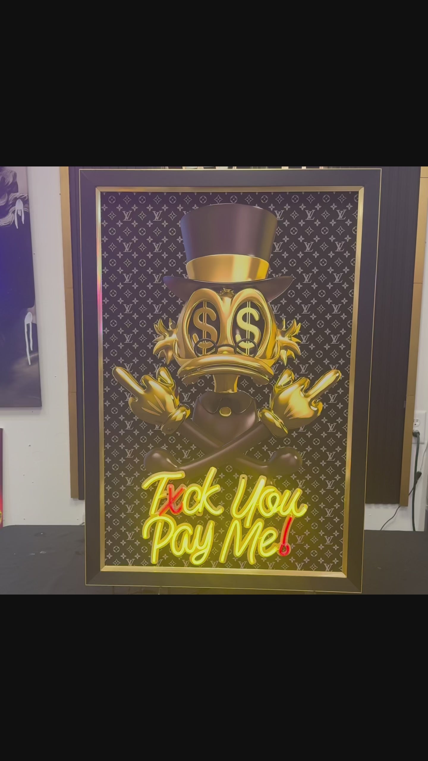 Donald Duck Scrooge – Gold Black Neon Wall Art “F* You Pay Me”