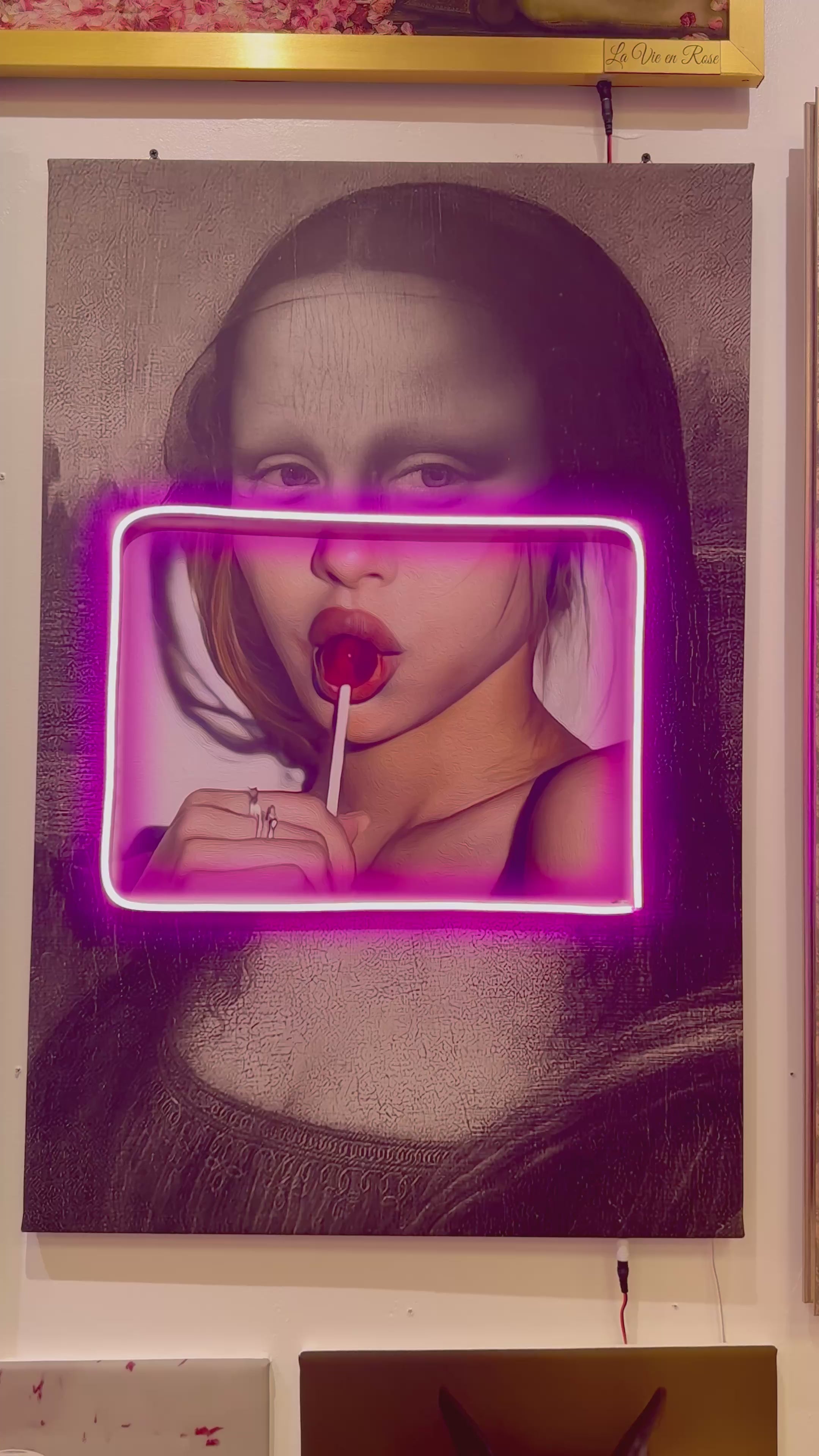 Elevate your walls with the Mona Lisa Pop Art – Neon Pink Frame & Lollipop Wall Decor. This bold artwork reimagines the iconic Mona Lisa with a modern twist – featuring a striking neon pink glowing frame and a playful red lollipop. The combination of classical art and contemporary neon pop makes this piece a true statement for living rooms, bedrooms, studios, or creative spaces. A perfect mix of timeless art history and edgy modern style.