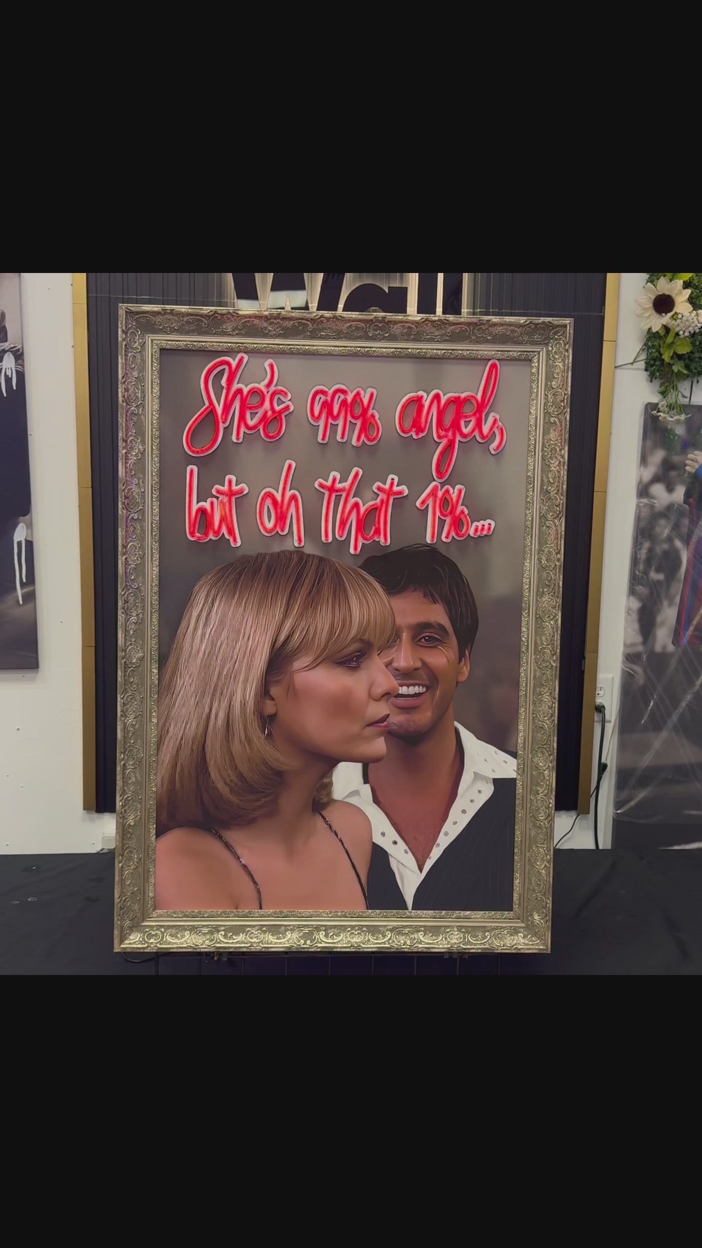 Bring bold energy and personality to your walls with this striking artwork featuring the phrase “She’s 99% Angel, But Oh That 1%”. Designed with a dramatic and cinematic aesthetic, this piece mixes elegance with attitude, making it the perfect décor for modern homes, entertainment spaces, studios, or anyone who loves statement art with character.